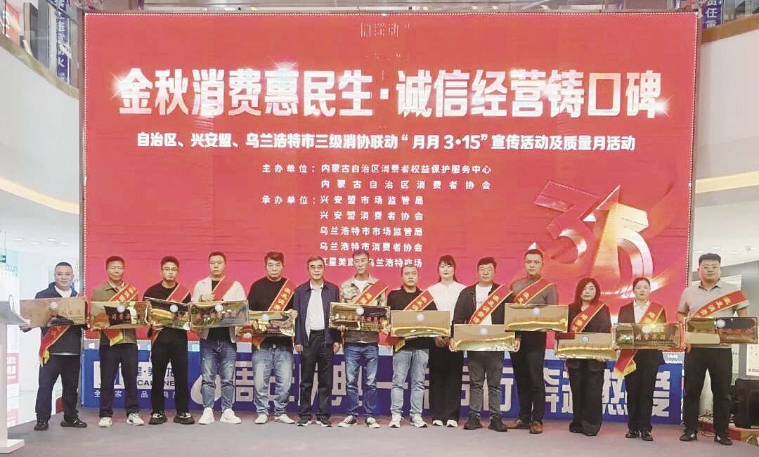 本报讯(记者 贺向军)9月13日下午,由内蒙古自治区消费者协会主办,兴安盟、乌兰浩特市两级市场监管局、消费者协会承办的“月月3·15—金秋消费惠民生·诚信经营铸口碑”宣传活动,在兴安盟乌兰浩特市红星美凯龙成功举办。活动旨在聚焦提振消费信心、优化消费环境,为当地消费者与经营主体搭建起诚信互动的桥梁。