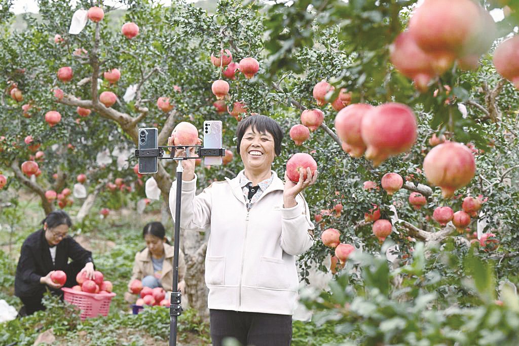 ▲9月22日,在河北省石家庄市元氏县北正乡北正村,农民在石榴园直播带货。