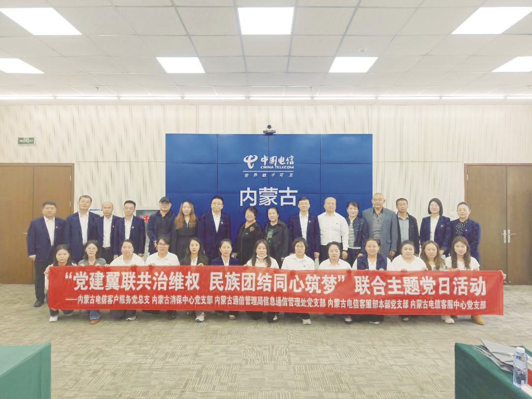 本报讯(记者 贺向军)为深入学习贯彻习近平总书记关于加强和改进民族工作的重要思想,全面落实“以人民为中心”的发展理念,推动党建工作与消费维权业务深度融合,9月26日,内蒙古自治区消费者权益保护服务中心(以下简称“消保中心”)党支部联合内蒙古自治区通信管理局信息通讯处党支部、内蒙古电信客户服务党总支、内蒙古电信客服部本部党支部、内蒙古电信客服中心党支部共同开展“党建翼联共治维权 民族团结同心筑梦”党建翼联活动。中心部分党员、12315投诉平台相关人员及内蒙古电信公司部分人员参加活动。