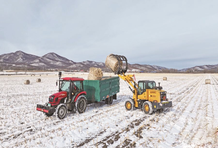 ▲11月11日,农机手驾驶农机在玉米田里回收玉米秸秆。 韩颖群/摄