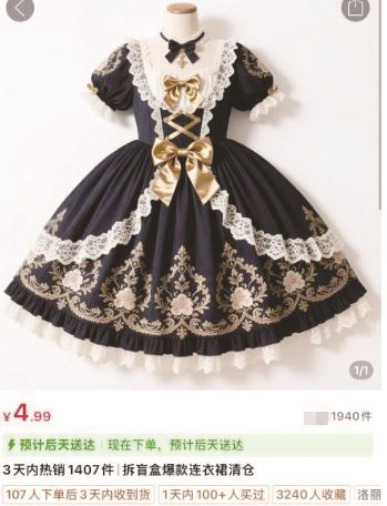 近段时间,在网络购物平台上,连衣裙盲盒以随机款式、包邮特价为核心卖点,吸引不少消费者购买。部分商品页面明确标注“无主图款”,意味着实际货品与宣传图无关,宣传图或仅是商家引流的工具,并非真实发货款式。