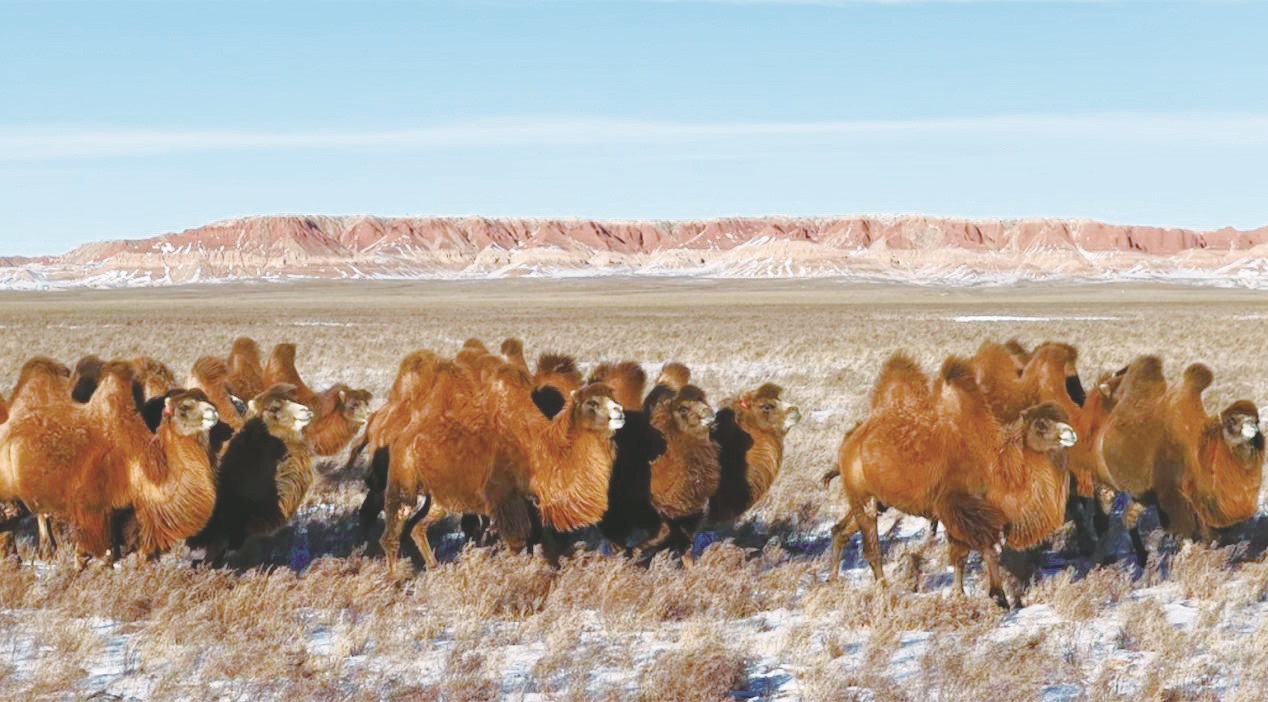 四子王旗大红山下的驼群。