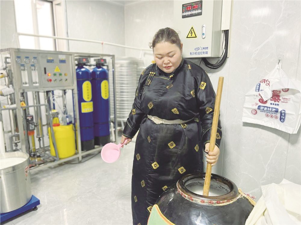 2021年起,恩和巴图注册了“额日其”商标,办了小作坊登记证,建起标准化发酵车间和挤奶大棚,走上了规范化、规模化生产之路。实际上,近年来在锡林郭勒盟大力发展传统奶制品产业的背景下,越来越多的牧户找到了增收密码。